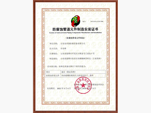 山東東興揚(yáng)(淄博五環(huán))防腐設(shè)備有限公司是專業(yè)的鋼襯玻璃廠家,鋼襯玻璃,鋼襯玻璃管道等產(chǎn)品使用壽命長(zhǎng),造價(jià)低,集開(kāi)發(fā)、設(shè)計(jì)、生產(chǎn)、經(jīng)營(yíng)于一體的專業(yè)性的工業(yè)防腐單位,被評(píng)選為中國(guó) 工業(yè)防腐蝕技術(shù)協(xié)會(huì)會(huì)員企業(yè)單位。